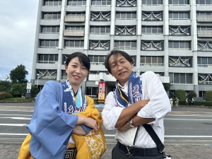 👆市役所前にて、森田初恵川越市長&斉藤社長😄