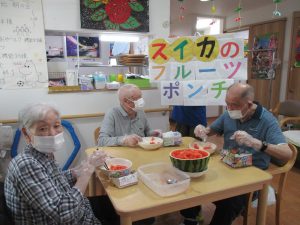 💛↓フルーツポンチづくりや焼きおにぎりづくりなどなど、9月もいろんなおやつレクを開催しましたよ~🍉😋