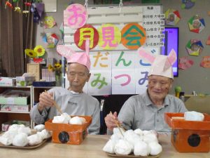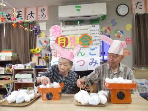 💛↓“お月見会”では箸をつかってお団子を積むゲームに挑戦!!🐰🐰